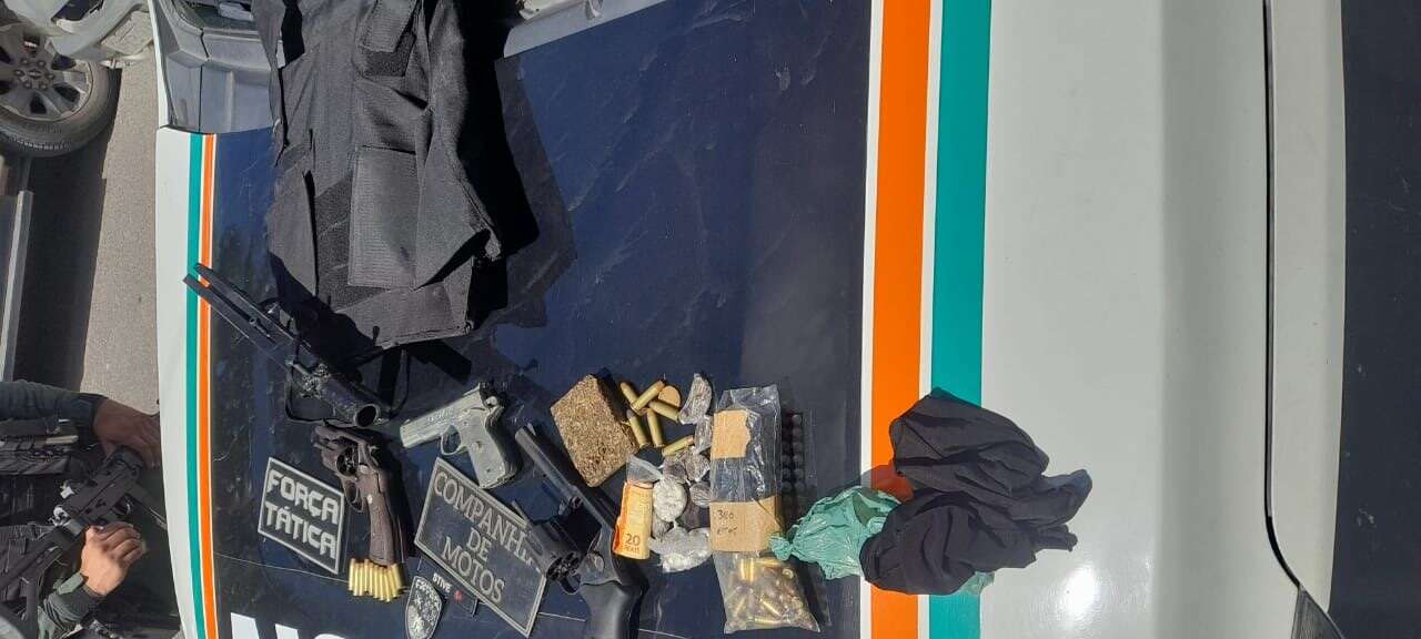 Na manhã de terça-feira, 30 de maio, as composições da Polícia Militar do Ceará (PMCE) apreenderam uma arma artesanal de calibre 12, um revólver de calibre .38, um simulacro de arma de fogo, um colete balístico, 69 munições, maconha, crack e R$ 65 em espécie no bairro Planalto Ayrton Senna, em Fortaleza.